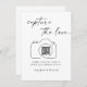 Apresentando nosso "Cartão de compartilhamento de fotos personalizado de casamento com código QR" - uma forma personalizada e conveniente de encorajar os convidados a compartilhar suas fotos do seu dia especial. Este cartão apresenta um código QR personalizado que os convidados podem analisar para aceder facilmente à sua plataforma de partilha de fotografias de casamento. Personalize todos os detalhes para tornar este cartão exclusivamente seu. Design simples, preto e branco que você pode personalizar com uma mensagem junto ao código QR. O código de QR personalizado torna simples para os hóspedes compartilhar suas fotos, garantindo que você captura cada momento precioso de sua celebração. Perfeito para aprimorar sua experiência de casamento e capturar memórias, este cartão de compartilhamento de fotos combina o estilo com funcionalidade. Faça uma declaração com este cartão projetado de forma exclusiva que adiciona um toque de conveniência aos seus esforços de compartilhamento de fotos de casamento.
