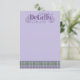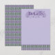 This elegant Art Nouveau details card is bordered by uniform rows of bright lavender thistle surrounded by scrolling deep green vines on a lilac background. The decorative floral announcement text color can be changed to meet your needs.