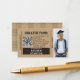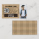 Procurando ideias para formatura de menino? Este conjunto de papelaria para formatura de menino com um convite de festa de formatura com foto divertida e única com tema de passe de corredor e acessórios com um padrão xadrez sobre o fundo de papel kraft são apenas o necessário para celebrar seu graduado com estilo. Estes cartões de código QR para fundo universitário para meninos podem ser facilmente e totalmente personalizados. Um perfeito cartão de agradecimento de formatura do ensino médio para meninos que pode ser facilmente integrado a qualquer outro tema de festa de formatura. Esquema de cores preto e marrom, fundo de papel kraft.