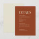 Este Deco de Boho de outono | Cartão de cerimônia de detalhes do casamento em ferrugem cria um deserto rústico simples e versátil ou tema ocidental do país para a celebração do seu casamento. Com a laranja queimada, terracota, ferrugem, esquema de cor de cobre, combinado com o design minimalista de bege simples, permite que a combinação clássica e as outras cores nesta coleção de outono criem seu próprio esquema de cores exclusivo. Adicione mais detalhes à parte traseira com quaisquer informações adicionais para seus convidados.