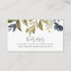 Neste outono, o website de casamento verde RSVP é perfeito para um casamento outono. A design moderna rústica apresenta folhas azuis marinhos, verdes-sábios e douradas com espirros de flores azuis escuras.