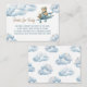 Este chá de fraldas bonito para o cartão de bebê apresenta um ursinho de pelúcia voando num avião entre nuvens fofinhas.