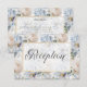 Cartão De Informações Azul e Branco Floral Rústico Moldura Dourada Branc