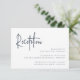 Um pequeno cartão de convite para o casamento para os detalhes da sua recepção, com "Recepção" no topo em letra manuscrita, e os detalhes da sua recepção alinhados no canto inferior direito. Projetado para combinar com nossos convites de casamento de Script Manuscrito Moderno. Uma bela design baseada na tipografia, com um toque minimalista, com um roteiro manuscrito azul-marinho moderno e uma letra serif clássica.