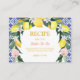 Elevem seu chá de panela com os nossos azulejos azuis mediterrânicos italianos, cartões de receita. Este design encantador apresenta limões aquosos vibrantes e rosas cor-de-rosa delicadas, complementadas pelo intrincado padrão mediterrânico de azulejos azuis italianos, o roteiro "RECIPE FOR THE BRIDE-TO-BE" em letras douradas e cor-de-rosa. Este cartão promete trazer o prazer do charme mediterrânico ao seu chá de panela. Modelo facilmente personalizável e editável. Você pode transferir este design para uma variedade de produtos sem esforço.