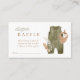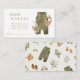Este cartão de rifa de fralda boho contém roupas adoráveis de bebês em uma paleta de cor neutra, verde, bege e e marrom. A parte de trás do cartão mostra roupas e acessórios de bebê de cor d'água. O texto totalmente personalizável permite personalizar todos os detalhes do seu chá de fraldas.