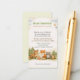 The design includes adorable woodland animals—deer, fox, raccoon, owl, and squirrel—gathered around baby blocks and diapers, set against a soft forest backdrop. This whimsical woodland theme blends charm with functionality, perfect for rustic, nature-inspired, or woodland baby showers. With customizable details for date, time, and location, this card ensures every guest feels part of the celebration.