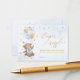 Cartão De Informações Balão de Urso Azul Dourado Estrelas Livros para Be