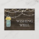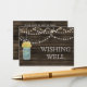 Rustic Barnwood, luzes de cordas balançando com flores amarelas em um casamento de jarro de pedras desejando cartas de poço. Produtos correspondentes também disponíveis.