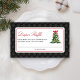 Cartão de cerimônia de fralda elegante com árvore de Natal fofa e tipografia moderna em um lindo fundo preto tufado.