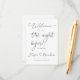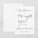 Elegante cartão de boas-vindas para a noite anterior / jantar de ensaio. Os nomes da noiva e do noivo são escritos em uma fonte que conecta corações. Se você gostaria de usar esta fonte caligráfica, por favor entre em contato comigo para alterar os nomes. Caso contrário, você pode ajustar o texto de acordo com suas necessidades.