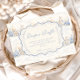 A sweet vintage-inspired design featuring delicate blue bows, soft striped detailing, and charming blueberry garden illustrations. Toile-style artwork with adorable animals and fruit baskets creates a classic storybook feel in a soft powder blue palette. The ornate central frame adds elegance while keeping the overall look light, refined, and timeless. Perfect for a baby shower with a gentle garden theme and a touch of traditional charm.