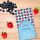 Um bebê doce de fruta está a caminho! Fruta de mirtilo e morango com padrão de tabuleiro azul e branco e arco de tendência