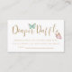Bilhete de fralda doce, de chá de fraldas, com borboletas cor-de-rosa e de menta e talheres de ouro falso. O cartão ao convidado que traga pacotes de fraldas para ganhar um prêmio especial. O texto é editável.