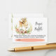 Um bilhete de rifa de fralda para incluir com seus convites. Há um cervo bebê no meio da folhagem e flores, e lê-se "Rifa de Fraldas!". Você pode personalizar o estilo da fonte, cor e estilo.