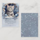 Design fofo de chá de bebê com letra trendy e gatinho aquarela engraçado com flocos de neve em fundo nevado. O texto pode ser facilmente personalizado para um design único e especial para o seu dia.
