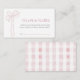 Este cartão de acompanhamento de bilhete de rifa de fralda para chá de bebê da menina fofa e charmosa apresenta um laço/rosa longo. O verso apresenta um fundo branco com xadrez/quadros gingham rosa. Personalize-o para suas necessidades. Você pode encontrar produtos correspondentes na minha loja.