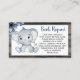 Tíquete de solicitação de livro Rustic, Flores Azuis Flóridas, cor d'água, fundo de madeira. Excelente adicional para o chá de fraldas do rapaz. Elefante russo com marinho de inverno. Arquivos digitais também estão disponíveis. ☐ ▪ ▪ ▪ ▪ Mais itens correspondentes aqui https://www.zazzle.com/collections/119982523391759962?rf=238722231659402553 Quer um design especial, por favor, entre em contato comigo!