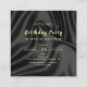 Elegant black birthday party invitation with a luxurious black silk satin fabric background, soft flowing folds and realistic texture. Premium gold typography with metallic foil effect. Handwritten cursive script for the main title “Birthday Party,” combined with modern minimalist sans-serif uppercase text for details. Centered layout, balanced spacing, refined and classy look. High contrast black and gold color palette, upscale, formal, and sophisticated celebration theme. No photos, no people, no illustrations. Print-ready, clean margins, professional invitation design.