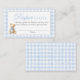 Cartão De Informações Blue Gingham Bear Baby shower Diaper Raffle Card