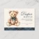 Cartão De Informações Blue Plaid Bear Baby Shower Diaper Raffle