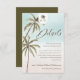 Cartão de cerimônia de cerimônia para convidados de palmeiras tropicais de coloração aquática boêmica. Nossa design apresenta nossas palmeiras tropicais desenhadas à mão. Uma bela paleta moderna de cores de vassoura cria este elegante e sofisticado design com um céu azul sutil e um fundo de gradiente arenoso. Todas as ilustrações são obras de arte originais desenhadas à mão por Moodthology Papery.