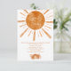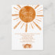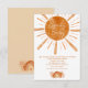 Traga um livro! Boho nosso pequeno raio de sol está quase aqui, com sol em aquarela boho laranja queimada e arco-íris, com coração e flores, livros para chá de bebê arco-íris para o bebê, com um lindo padrão de arco-íris, sol e flores na parte de trás. Perfeito para festa de chá de bebê neutro em gênero.