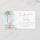 Help build a library filled with love! On the right side, a beautifully hand-painted watercolor design features a pink surfboard standing next to a green palm tree, with soft sand and ocean water behind them. The relaxed beach scene adds a breezy, coastal vibe to your baby shower.