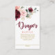 Cartão De Informações Borgonha e Fralda floral rosa Raffle