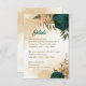 Belo cartão de cerimônia de detalhes do casamento, com flores verdes esmeraldas e douradas beges com folhas verdes. PARA MAIS PRODUTOS CORRESPONDENTES, clique na coleção acima ou entre em contato comigo