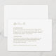 Moderno, chique e simples. Estes cartões de detalhes de casamento apresentam um texto de detalhe de casamento, código QR para o site e um conjunto contemporâneo de fontes em verde-oliva, contra um fundo branco nítido, tanto na frente quanto no verso.
