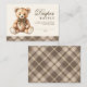 Cartão De Informações Brown Plaid Bear Baby Shower Diaper Raffle