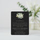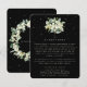 Um cartão de acompanhamento de casamento preto e liso para informações de viagem de casamento ou para direções se o seu reception for em um local diferente. Apresenta um buquê/ramalhete de snowberries pintadas à mão e eucalipto na frente e uma coroa na parte de trás do cartão. Todo o texto é totalmente editável e os pontos espalhados na frente e atrás podem ser excluídos antes de encomendar, se preferir. Este cartão está disponível com desenhos botânicos alternativos, em formato paisagem e em cores diferentes. Por favor, visualize a Coleção na minha loja para ver todas as opções e itens coordenados.