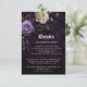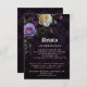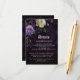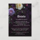 Romântico e meloso, este cartão formal de detalhes do casamento é perfeito para um sofisticado casamento moderno. O moody floral design apresenta um buquê natural de flores roxas e lavandas com uma rosa branca sobre um fundo roxo escuro e um fundo preto. Todos os detalhes do casamento podem ser personalizados para atender às necessidades do seu dia especial.