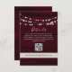 Boho, elegante, país, lanternas de cordas na rustic wood marsala burgundy — cartão de detalhes do casamento com código QR e website.
