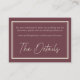 Celebrate your love with this minimalist burgundy wine small wedding details enclosure card design. Featuring a modern double frame, it's perfect for an elegant autumn ceremony. This earthy, modern look offers a warm and sophisticated feel for your autumn hued wedding. Created by Simply Farmhouse Press.