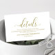 Cartão De Informações Caligrafia a ouro moderna, Detalhes do Casamento