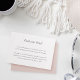 Precisa incluir mais detalhes no seu convite? Este cartão de inclusão personalizável tem dois campos de texto personalizados para compartilhar informações importantes com seus convidados. O design apresenta uma fonte de caligrafia preta suave e letras itálicas com um verso rosa suave sólido. Personalize o texto e adapte às cores ou tema do seu evento.