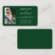 Cartão de Inserção de Registro de Casamento com Caligrafia Moderna. Foto na Frente. Verde