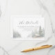 This wedding enclosure card features a serene winter landscape with a cozy wooden cabin nestled among snow-covered trees, creating a tranquil and inviting atmosphere. The design employs soft watercolor techniques with a muted palette of whites, grays, and warm browns, enhancing the dreamlike quality of the scene. Elegant script typography at the top reads "The Details," while clean sans-serif text provides information about accommodations, directing guests to a customizable website for more details. The overall mood is calm and nostalgic, perfect for setting the tone for a peaceful winter celebration.