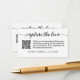 Apresentando nosso "Cartão de compartilhamento de fotos personalizado de casamento com código QR" - uma forma personalizada e conveniente de encorajar os convidados a compartilhar suas fotos do seu dia especial. Este cartão apresenta um código QR personalizado que os convidados podem analisar para aceder facilmente à sua plataforma de partilha de fotografias de casamento. Personalize todos os detalhes para tornar este cartão exclusivamente seu. Design simples, preto e branco que você pode personalizar com uma mensagem junto ao código QR. O código de QR personalizado torna simples para os hóspedes compartilhar suas fotos, garantindo que você captura cada momento precioso de sua celebração. Perfeito para aprimorar sua experiência de casamento e capturar memórias, este cartão de compartilhamento de fotos combina o estilo com funcionalidade. Faça uma declaração com este cartão projetado de forma exclusiva que adiciona um toque de conveniência aos seus esforços de compartilhamento de fotos de casamento.