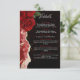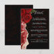 Um cartão elegante e moderno de núpcias com uma design romântica de rosas vermelhas sobre fundo preto, acentuado com uma textura luxuosa de ouro. É uma bela maneira de compartilhar todas as suas informações importantes sobre o casamento com os convidados.
