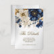 Cartão De Informações Casamento Azul Marinho Branco Dourado Floral Prata