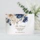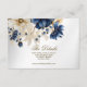 Cartão De Informações Casamento Azul Marinho Branco Dourado Floral Prata