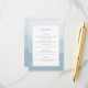Cartão Azul Moderno de Invólucro. Este belo e elegante cartão de detalhes de casamento azul contém um fundo ombre pintado a cores-d'água com uma borda branca. A parte de trás do convite inclui o mesmo fundo de aquarela azul. Localize itens correspondentes na Coleção de Casamentos de Ombre de Cor Azul Dusty.