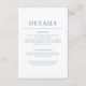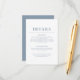 Preencha sua suíte de casamento com a elegância subestimada do nosso Simples Cartão Azul de Casamento. Apresentando um texto azul suave e empoeirado e um design limpo e minimalista, este cartão é perfeito para compartilhar detalhes essenciais como acomodação, direções ou informações itinerantes com seus convidados.