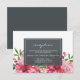 Cartão de recepção de casamento floral de paeônia rosa rubi elegante e moderno com flores de aquarela pintadas em rosa e pêssego e folhagem verde exuberante. A parte de trás do cartão é um off-black chic. Basta adicionar os detalhes do seu casamento. Se precisar de ajuda ou produtos correspondentes, entre em contato conosco através de nossa loja. Estamos felizes em ajudá-lo a tornar seu casamento o dia mais lindo!