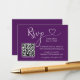 Placa RSVP de Casamento Simples e Minimalista de Script de Coração da Caligrafia Moderna com seu Código QR. Fundo Roxo.