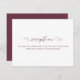 Marsala e cartão branco de recepção de casamento simples e chic burgundy com escrita de caligrafia clássica.