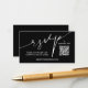 Esses modernos cartões de cerimônias de casamento preto e branco são uma maneira fácil para seus convidados RSVP no seu site de casamento. Inclua seu próprio código QR e seu site de casamento na frente e informações adicionais na parte traseira (exclua nosso texto para deixar o vazio de trás). As cores podem ser alteradas com nossas ferramentas de edição. O Serviço de Design ao Vivo pode ajudá-lo com o layout do seu design ou cores, se necessário.